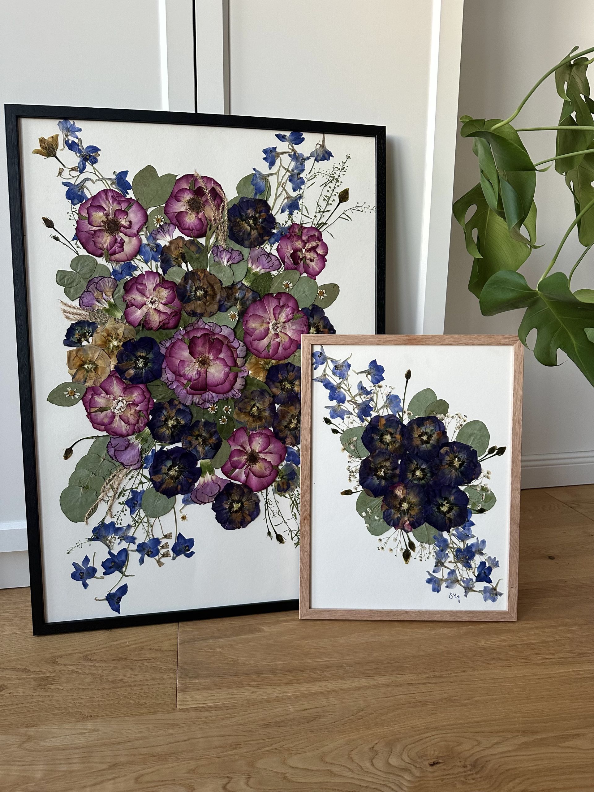Ich konserviere deine Blumen mit Liebe zum Detail, presse sie behutsam und arrangiere sie zu einem einzigartigen Kunstwerk.